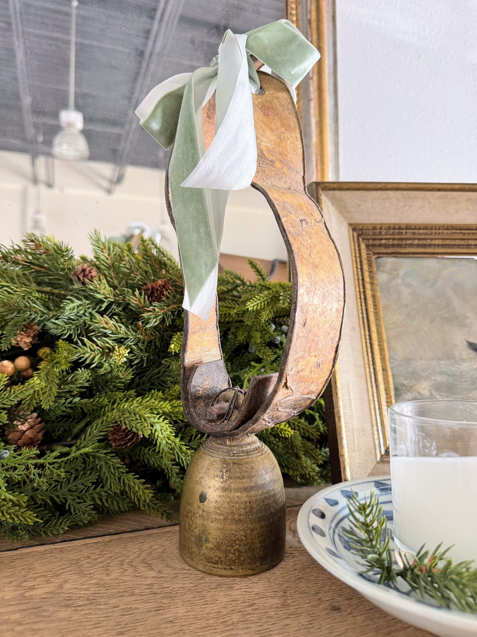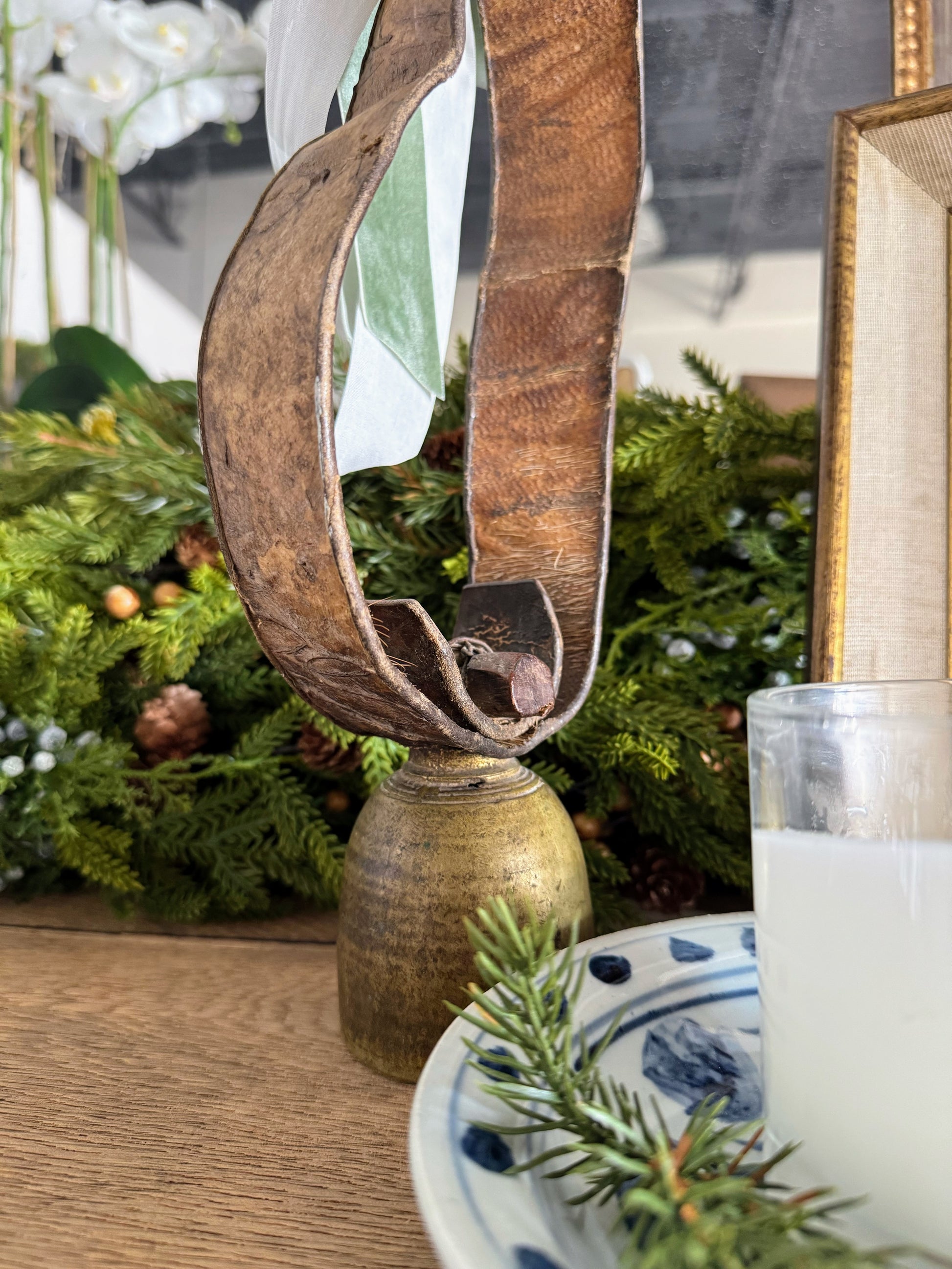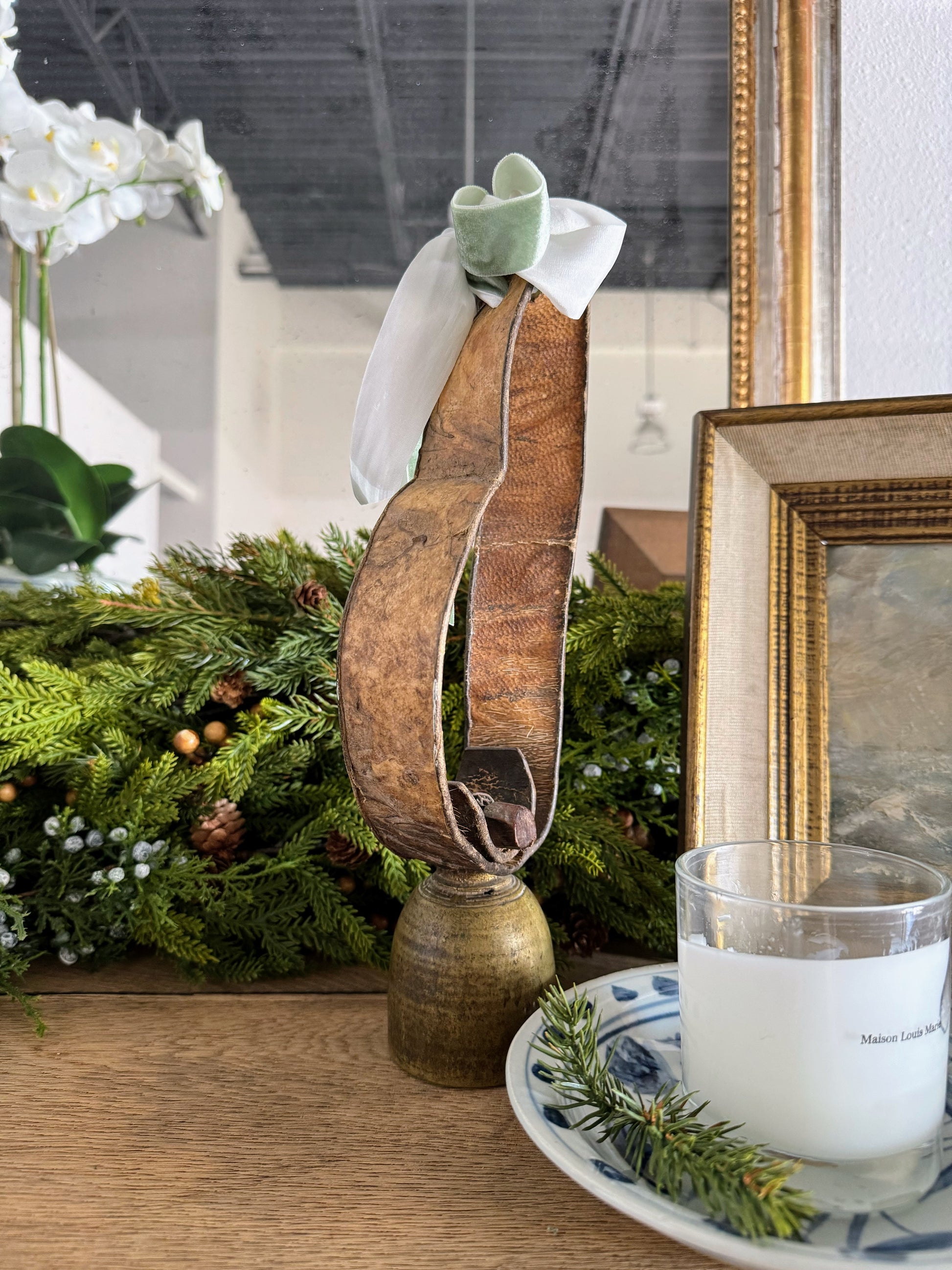This antique English cow bell is a charming piece of rural history that’s just as at home on a holiday wreath as it once was in the countryside.