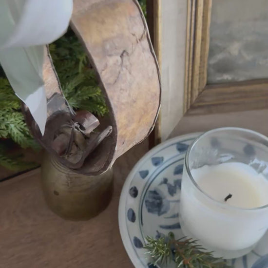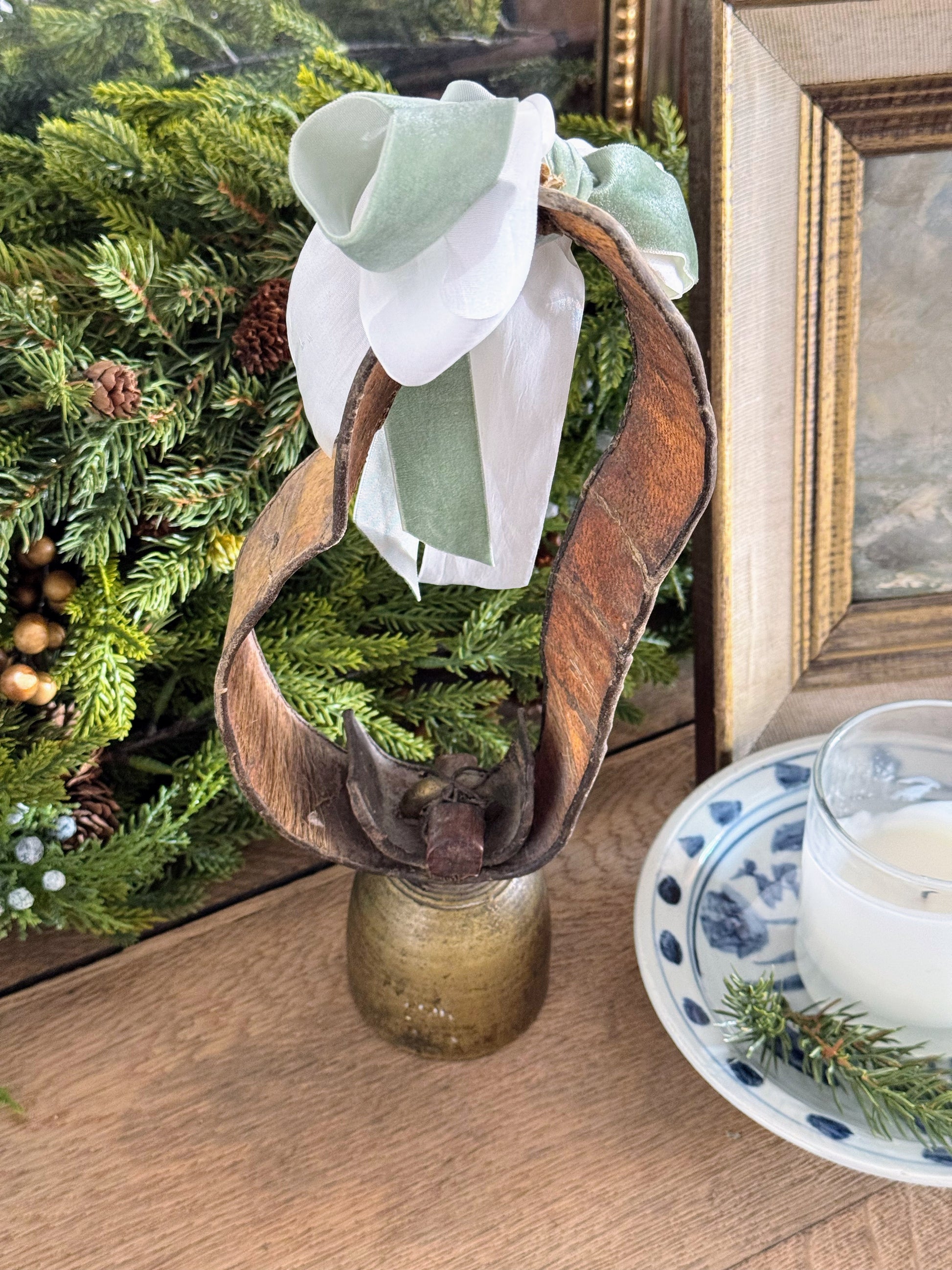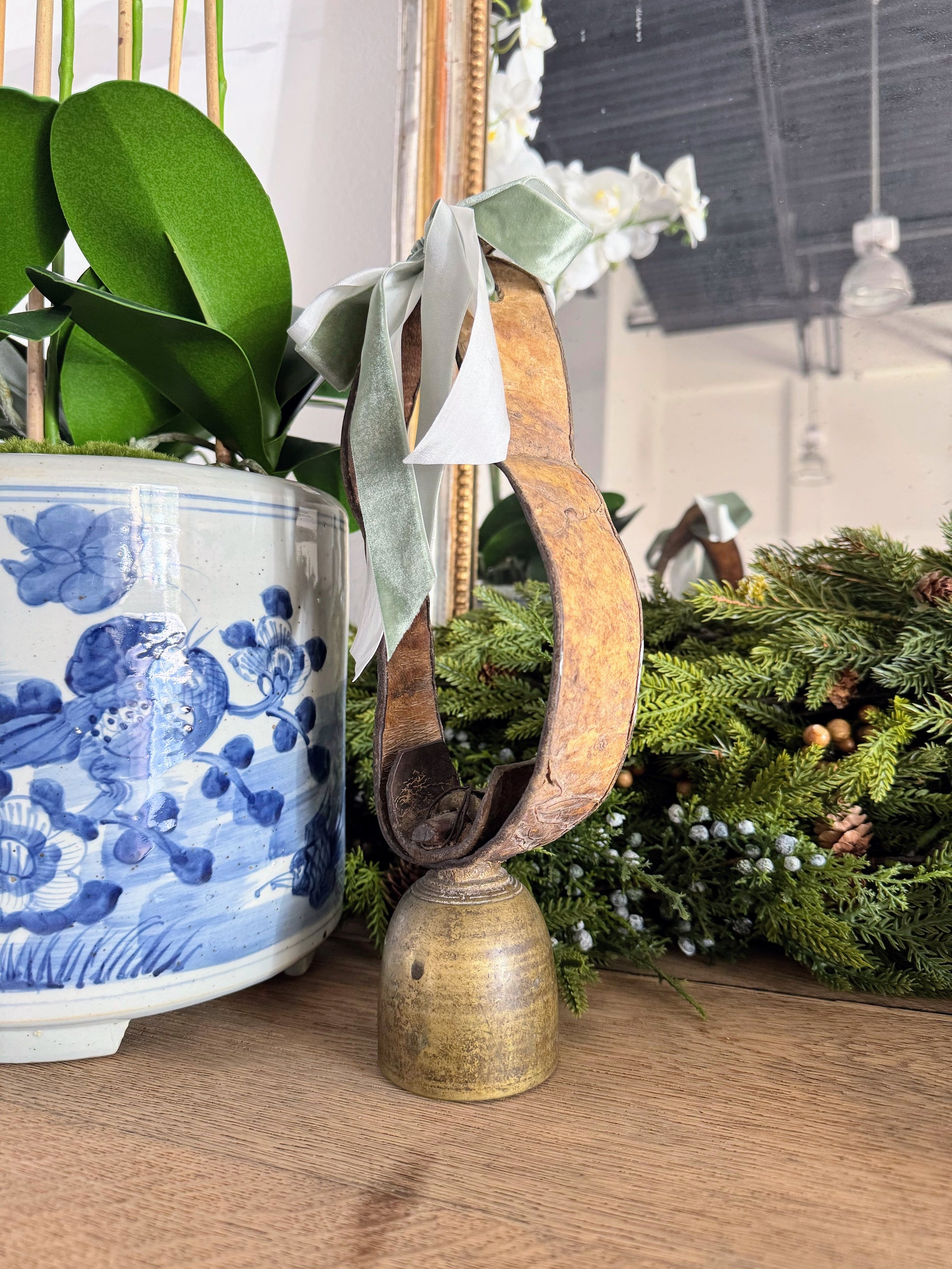 This antique English cow bell is a charming piece of rural history that’s just as at home on a holiday wreath as it once was in the countryside.