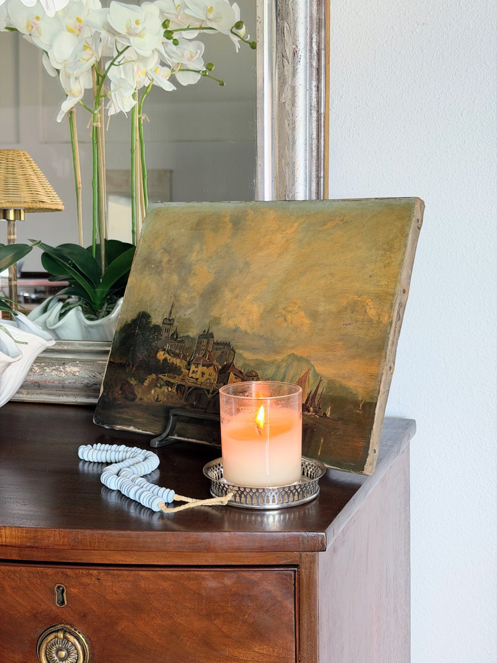 It’s the kind of piece that layers effortlessly—propped on a chest, worked into a bookshelf, or hung as part of a collected wall. The scale makes it especially easy to move around and restyle, and she would be beautiful paired with other landscapes or mixed in with darker woods and brass.
