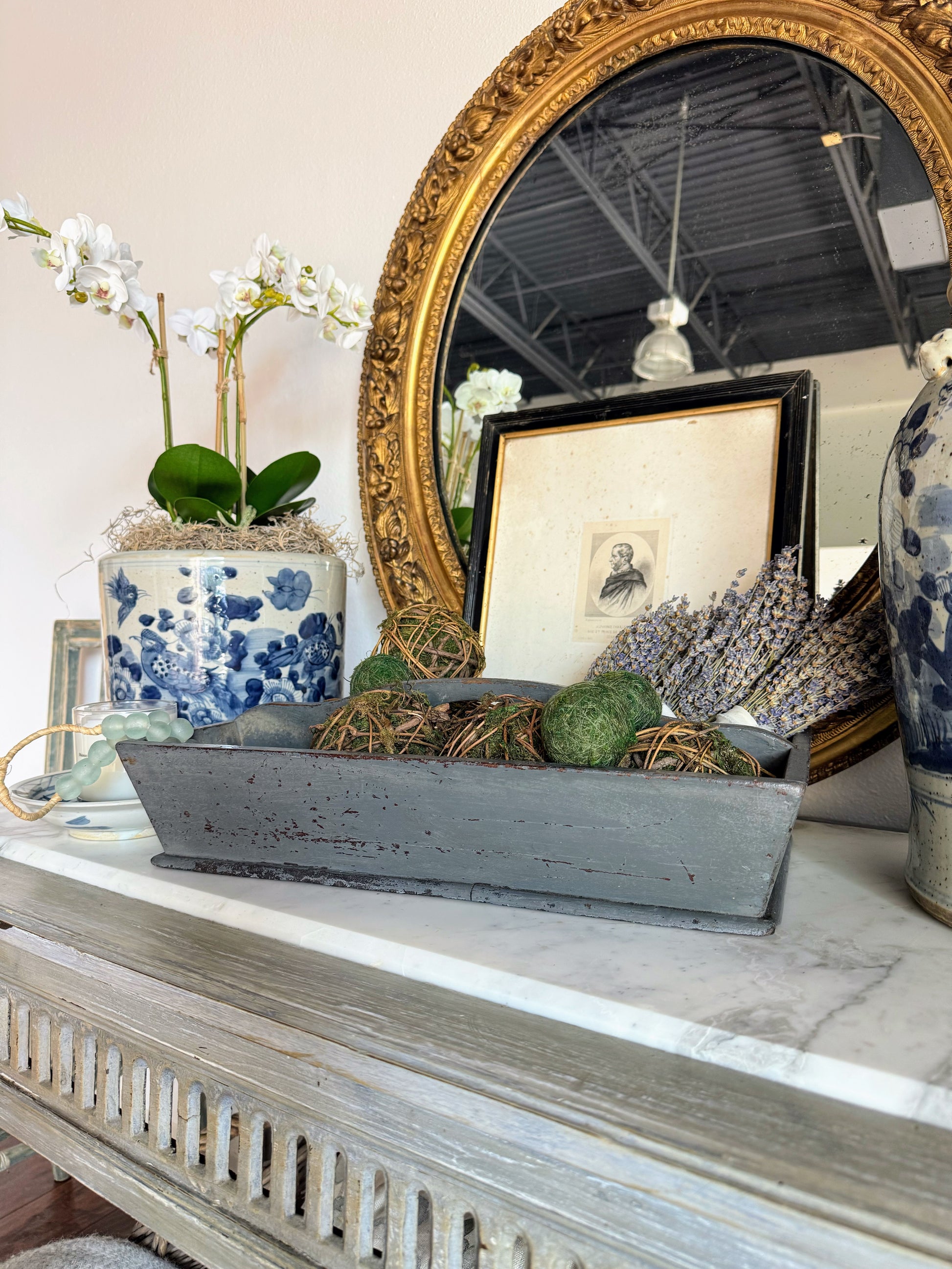 Hand sourced in England, this painted cutlery tray was originally a true household essential — it would have casually perched near the sink or carried from the scullery to the table. Its divided interior made it easy to sort forks, knives, and spoons (or perhaps even polishing cloths and odds and ends), and the central handle made it endlessly portable.