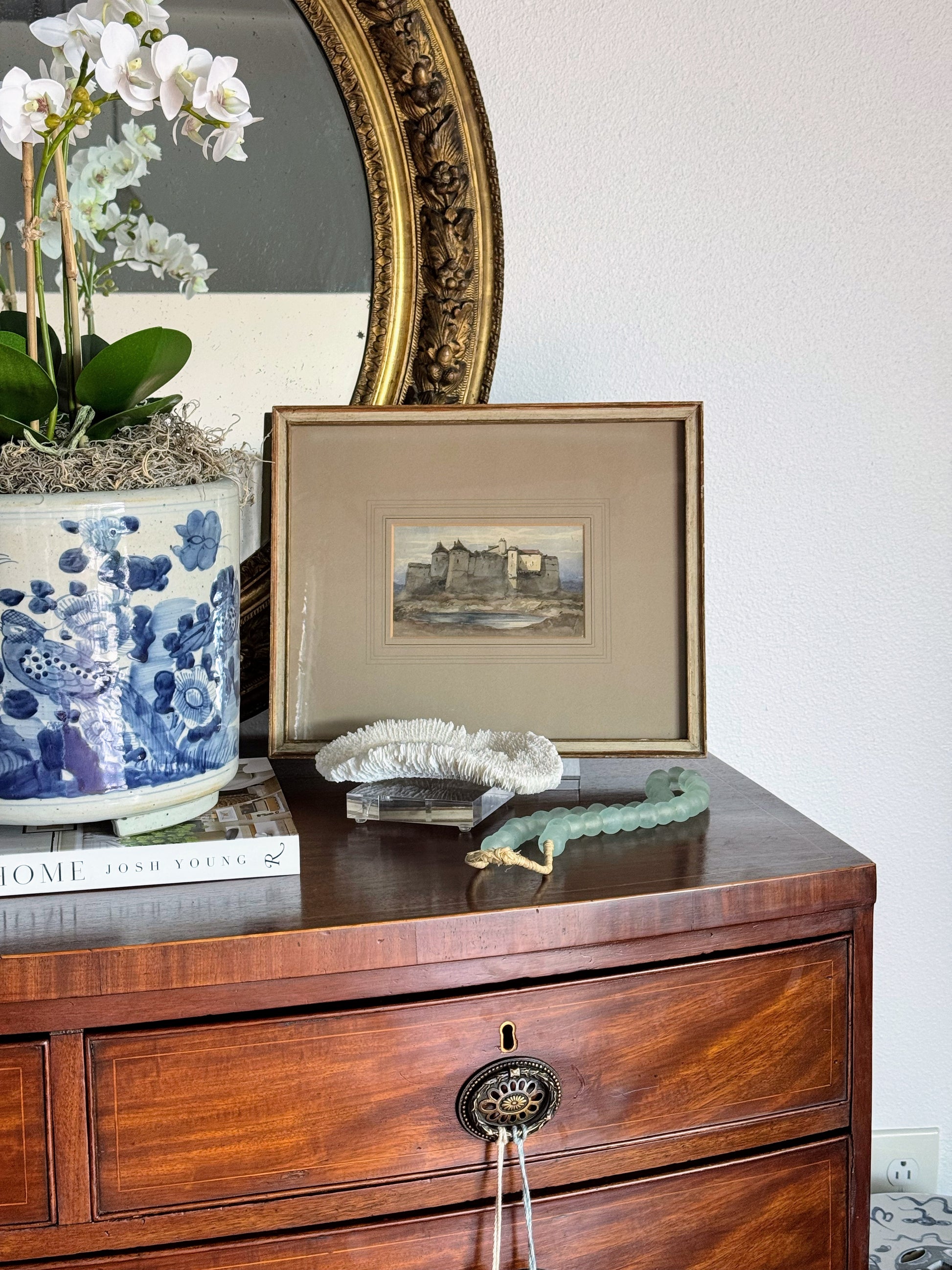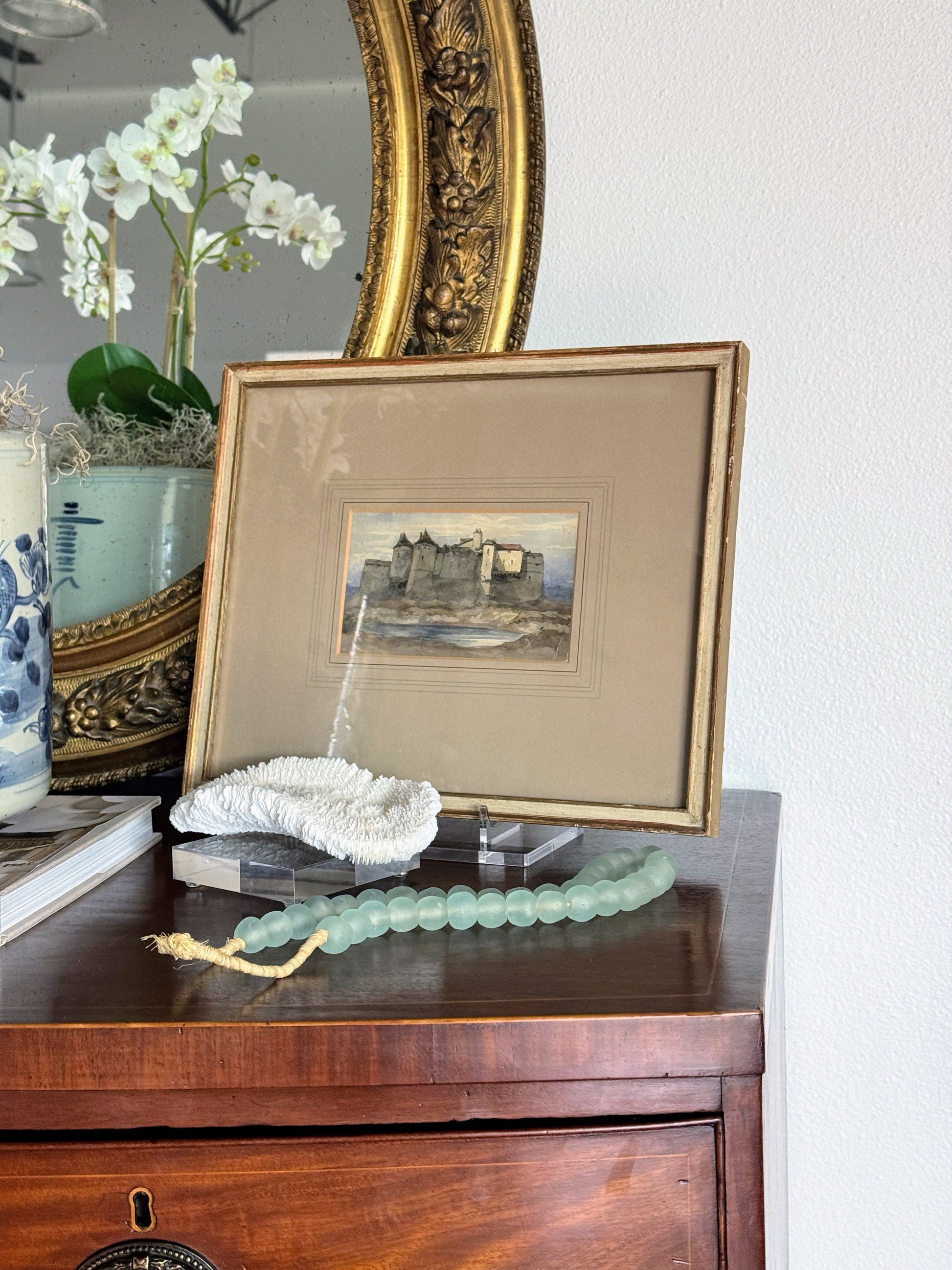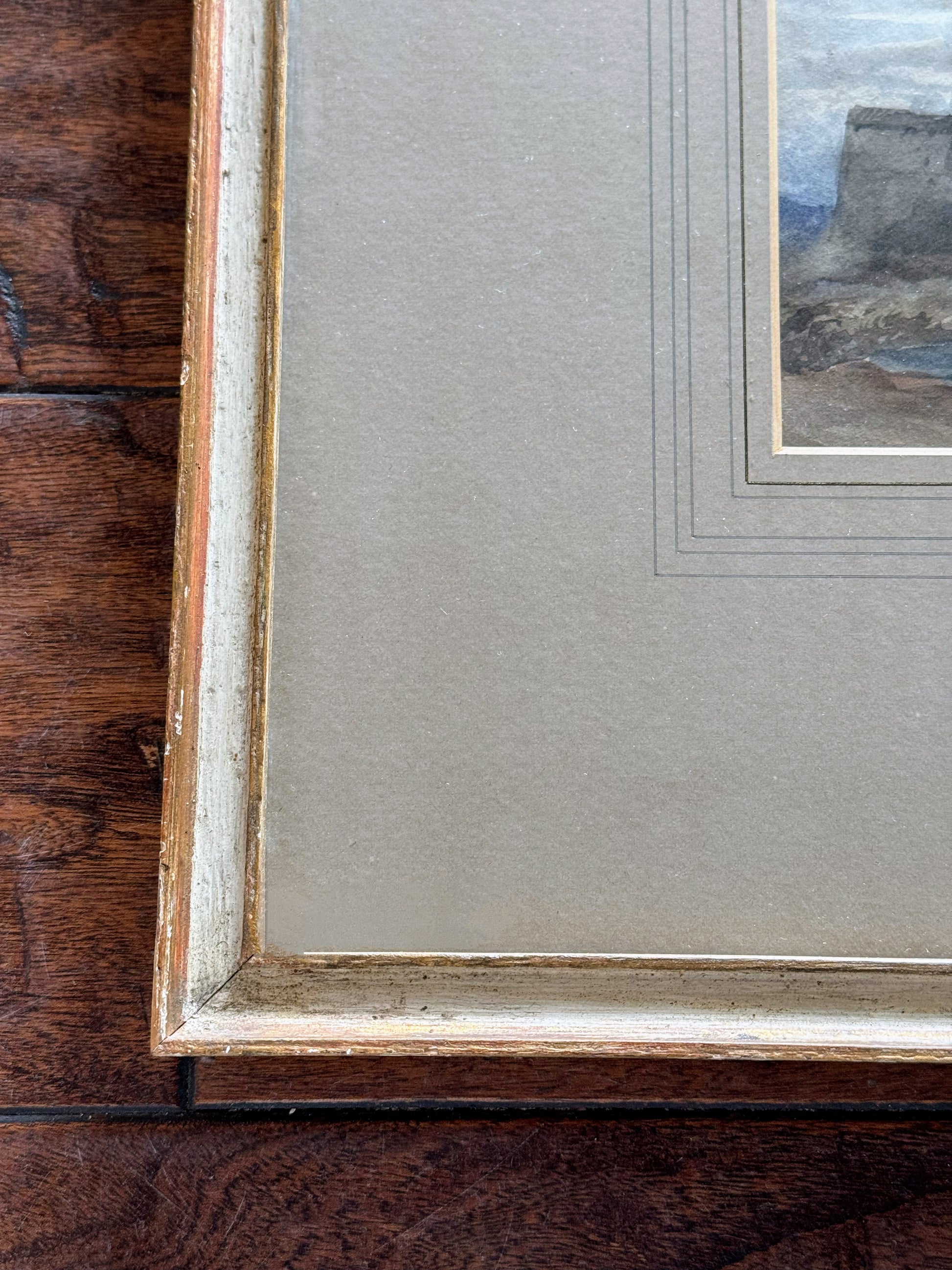 Hand sourced, this small watercolor on paper captures a quiet coastal view - likely a tiny island or seaside inlet - painted with soft brushstrokes and a gentle, atmospheric palette. While I sourced this piece in England, it’s strongly reminiscent of a French work, with that light, romantic quality often found in European coastal scenes.