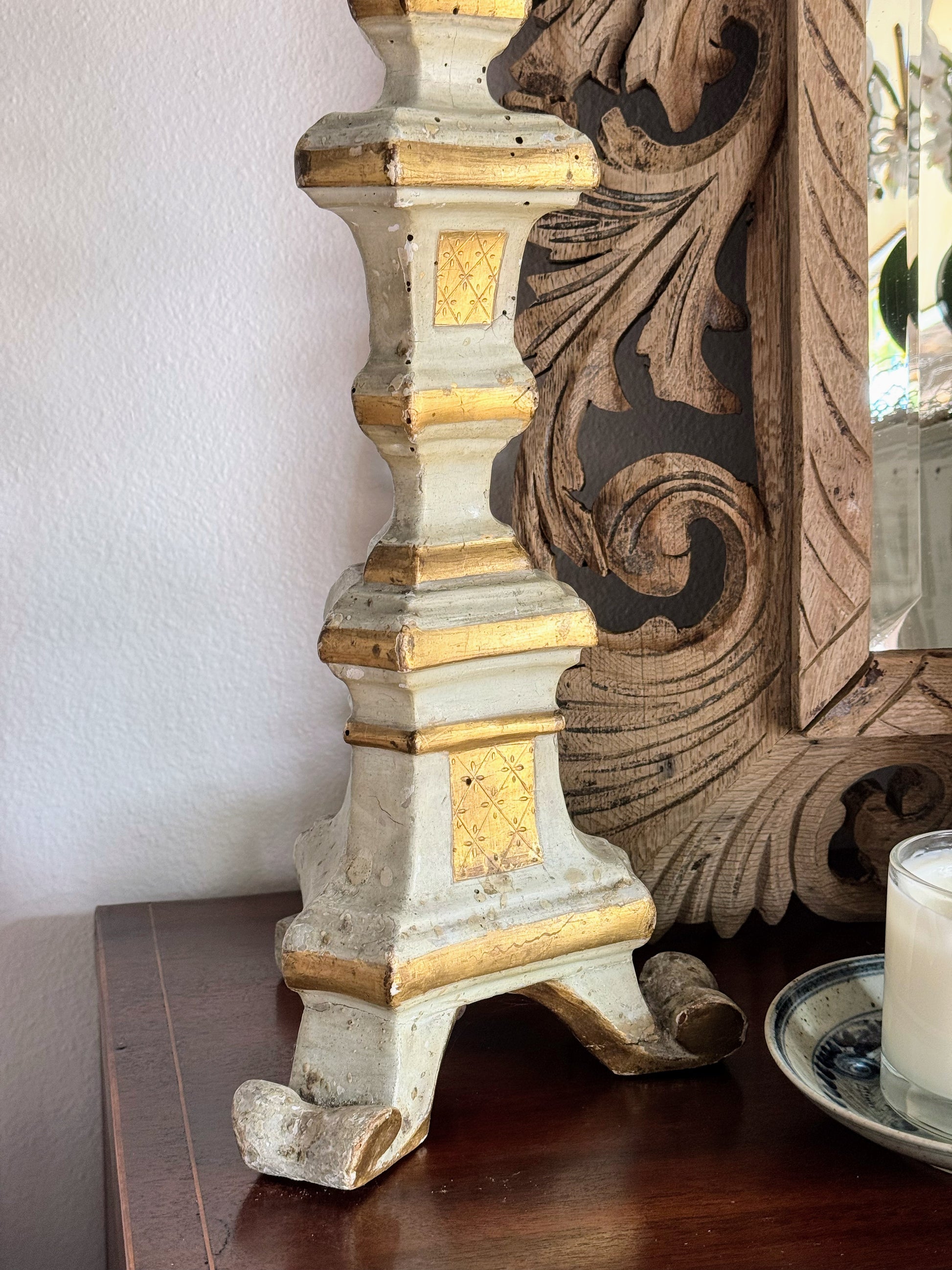 This French candlestick is pure styling magic. With its tall, sculptural shape, aged finish, and elegant turned details, it adds instant height, texture, and warmth to any vignette. You don’t need a candle—this piece stands beautifully on its own.