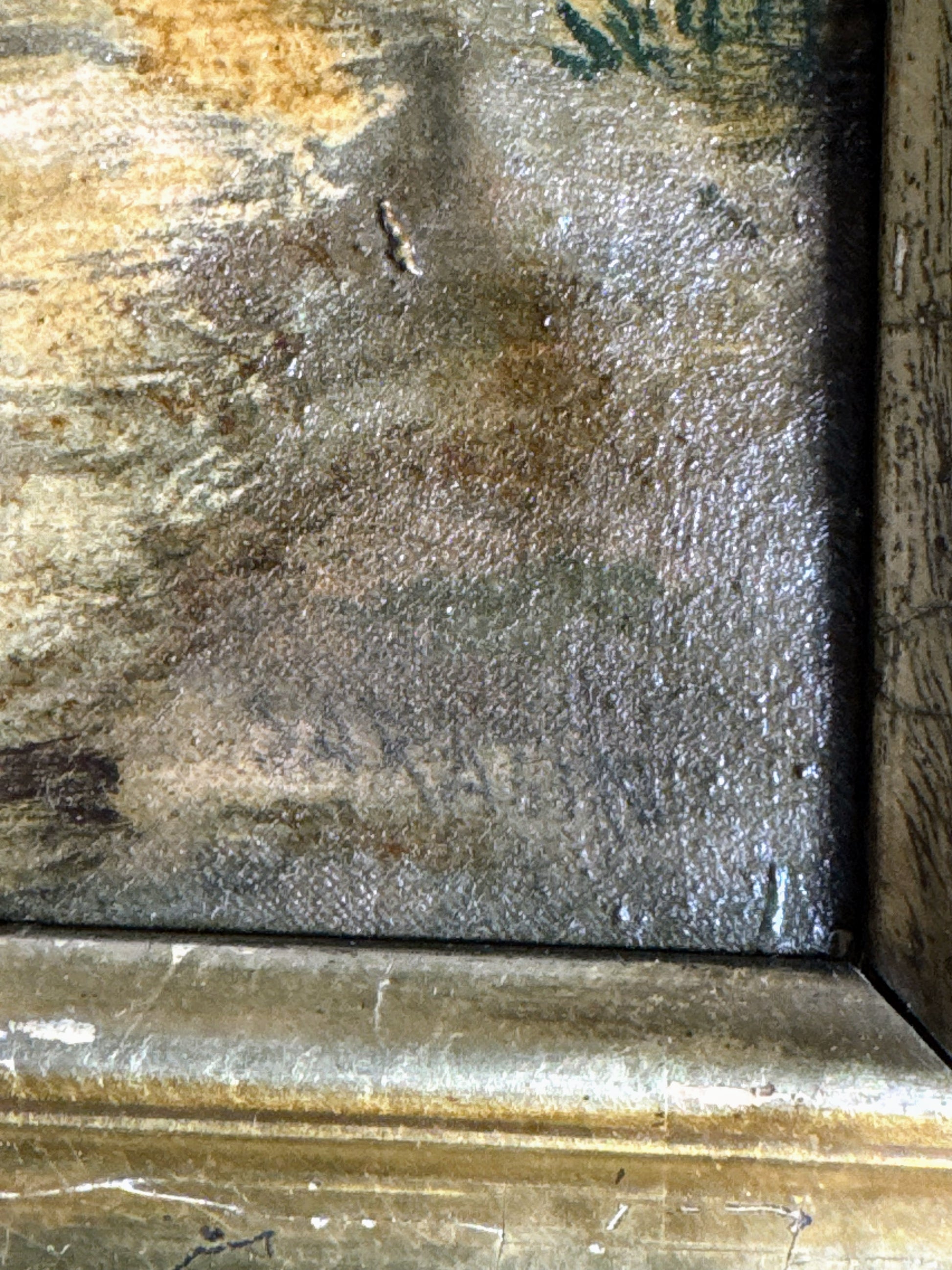 Good condition overall - minor wear to the frame, cracking to the paint, and canvas slackening adding to the character of the piece. Wear commensurate with age. As photographed.