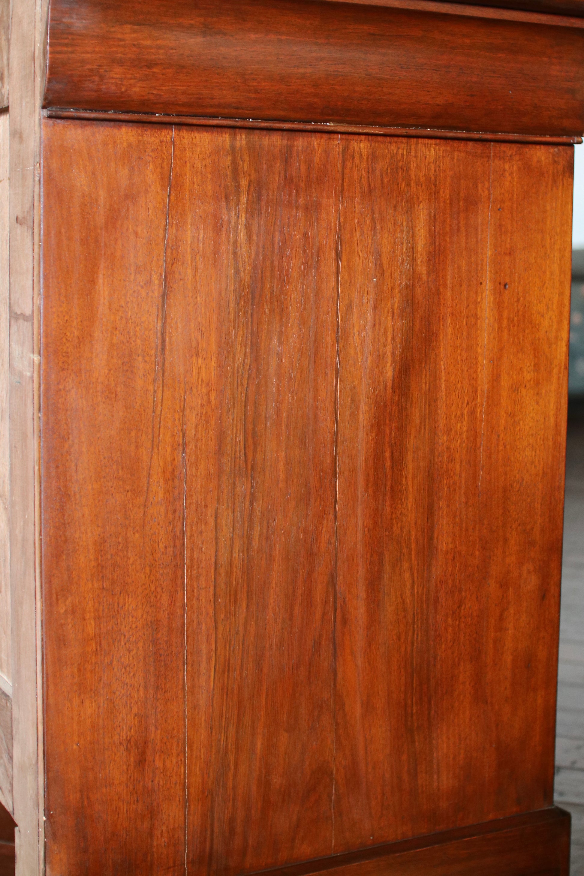 Good antique condition. Wear to the finish, including minor surface imperfections throughout and panel separation on the sides, consistent with age and use, all as photographed.