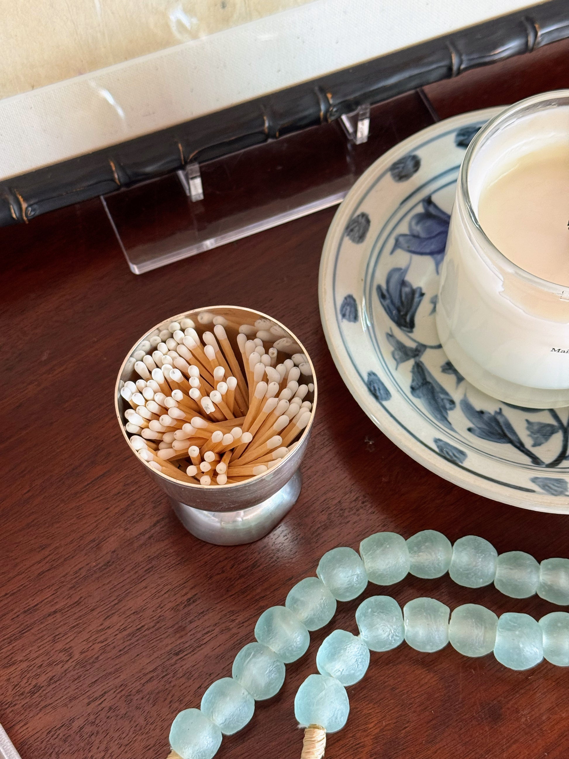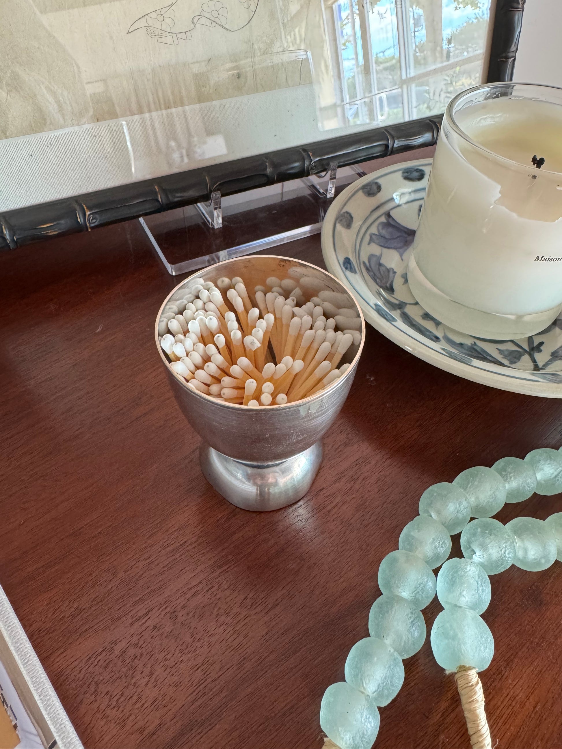 Hand sourced in France, this cup was originally crafted as a French communion cup but has been cleverly repurposed into a match holder!
