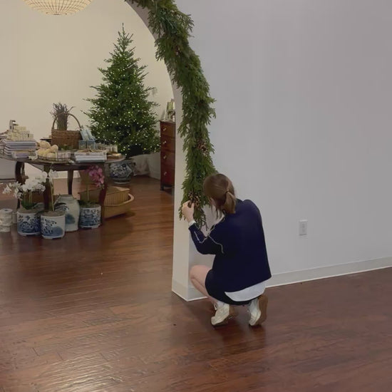 Sold in 5.5-foot sections, these garlands can be styled alone or joined together for a grand, sweeping statement. Whether you’re draping a mantel, framing a doorway, or winding it down a staircase, this garland brings a layered, textural touch that feels effortless and elevated.